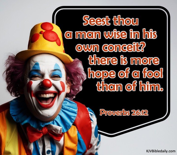 Proverbs 26:12 KJV Share this:Tweet Click to share on WhatsApp (Opens in new window) WhatsApp Click to print (Opens in new window) Print Click to share on Reddit (Opens in new window) Reddit Click to email a link to a friend (Opens in new window) Email Share on TumblrPocket Click to share on Telegram (Opens in new window) Telegram Like Loading... Related