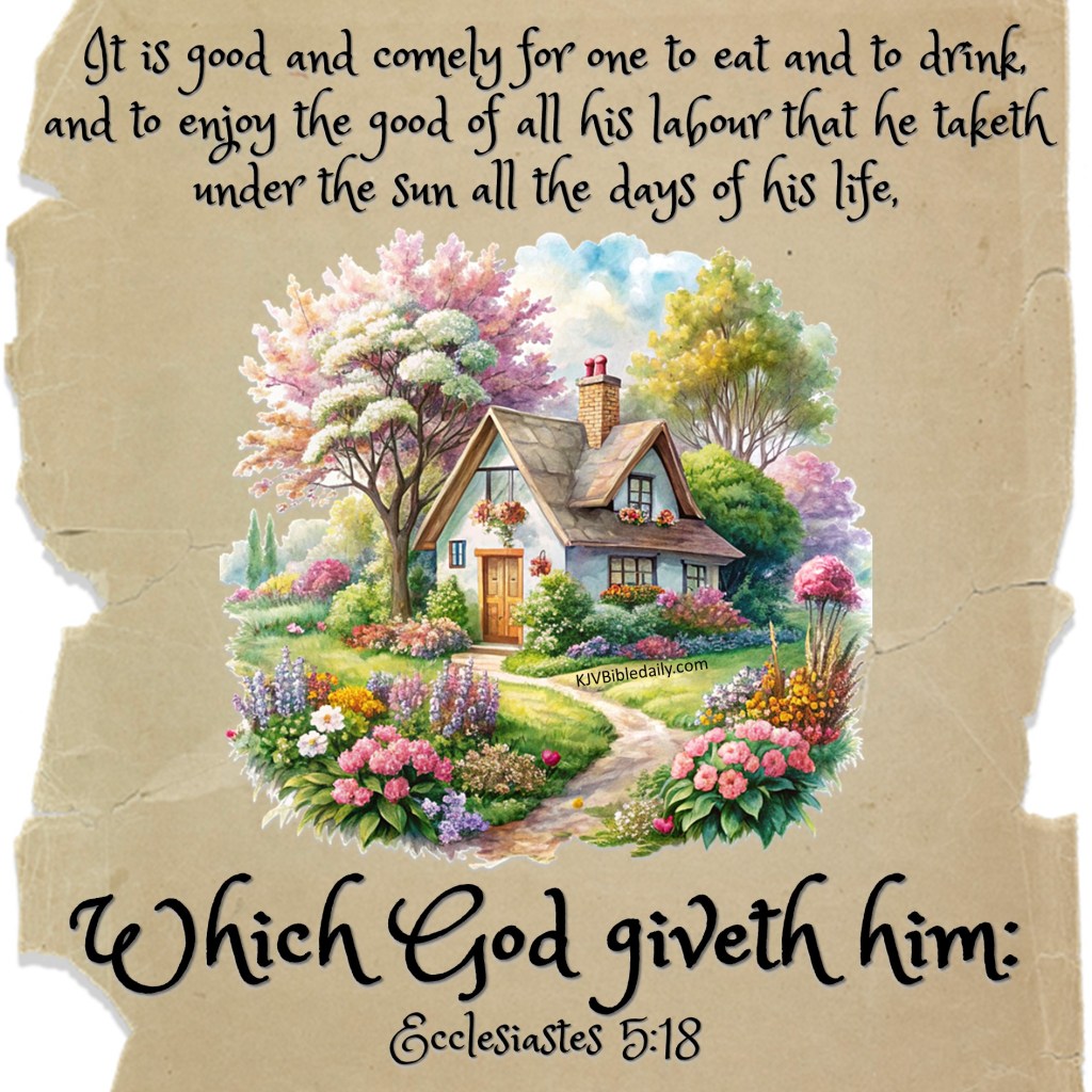 Ecclesiastes 5:18 KJV <a href=" Share this:Tweet Click to share on WhatsApp (Opens in new window) WhatsApp Click to print (Opens in new window) Print Click to share on Reddit (Opens in new window) Reddit Click to email a link to a friend (Opens in new window) Email Share on TumblrPocket Click to share on Telegram (Opens in new window) Telegram Like Loading... Related