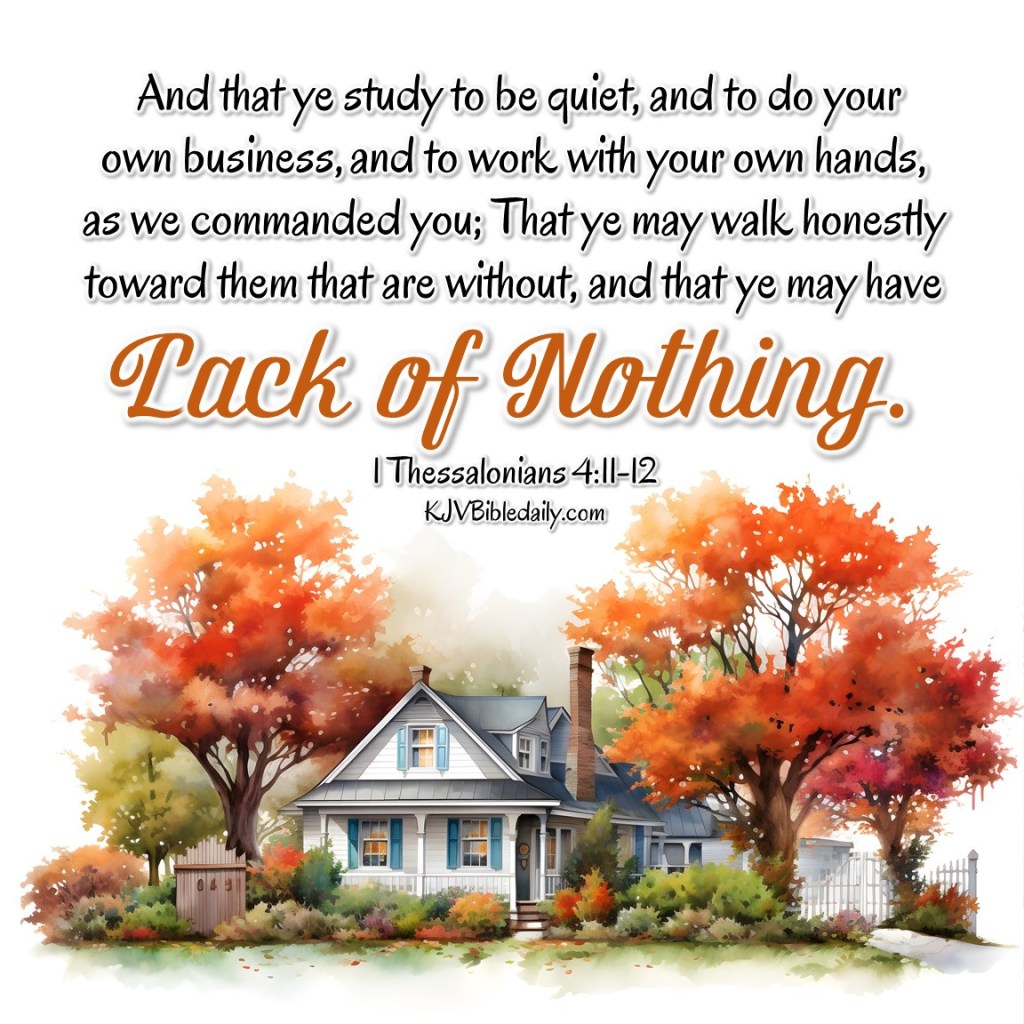 1 Thessalonians 4:11-12 KJV <a href=" Share this:Tweet Share on WhatsApp (Opens in new window) WhatsApp Print (Opens in new window) Print Share on Reddit (Opens in new window) Reddit Email a link to a friend (Opens in new window) Email Share on Tumblr Share on Telegram (Opens in new window) Telegram Like Loading... Related