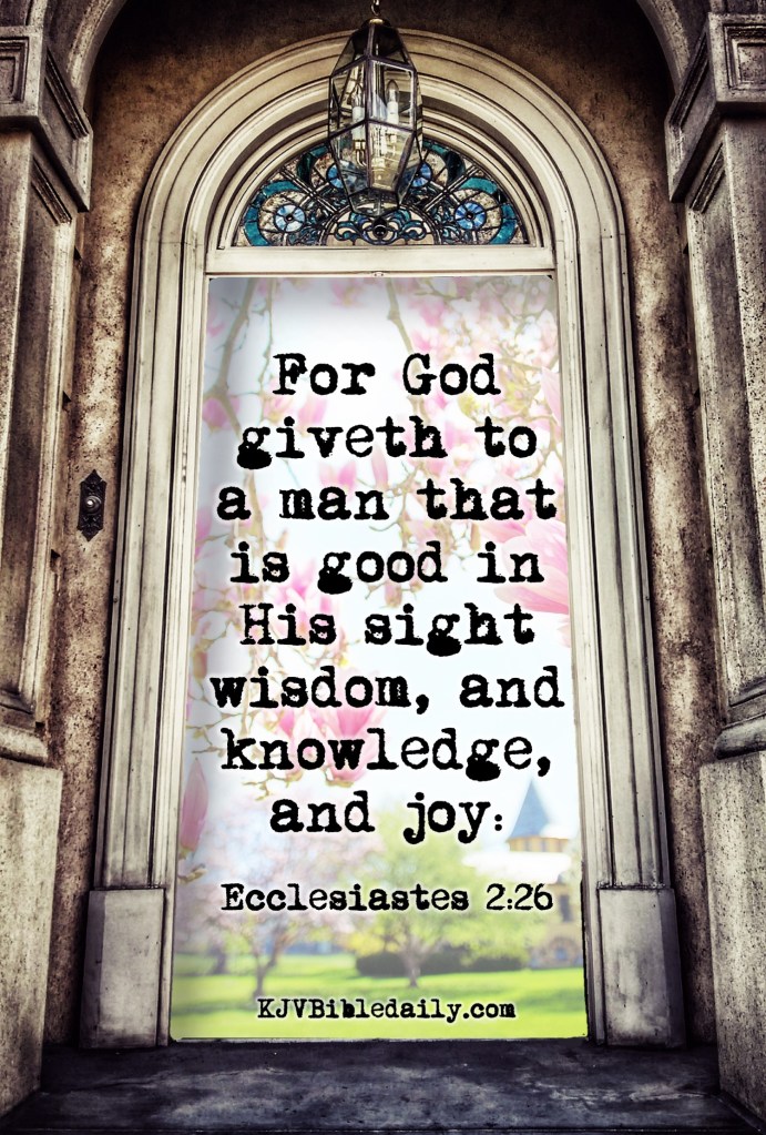 Ecclesiastes 2:26 KJV Share this:Tweet Click to share on WhatsApp (Opens in new window) WhatsApp Click to print (Opens in new window) Print Click to share on Reddit (Opens in new window) Reddit Click to email a link to a friend (Opens in new window) Email Share on TumblrPocket Click to share on Telegram (Opens in new window) Telegram Like Loading... Related
