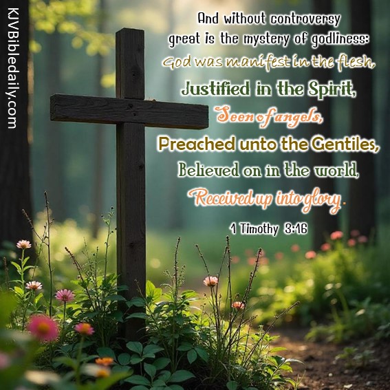 1 Timothy 3:16 KJV Share this:Tweet Click to share on WhatsApp (Opens in new window) WhatsApp Click to print (Opens in new window) Print Click to share on Reddit (Opens in new window) Reddit Click to email a link to a friend (Opens in new window) Email Share on TumblrPocket Click to share on Telegram (Opens in new window) Telegram Like Loading... Related