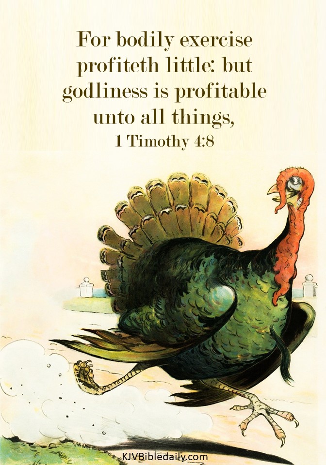 1 Timothy 4:8 KJV Share this:Tweet Click to share on WhatsApp (Opens in new window) WhatsApp Click to print (Opens in new window) Print Click to share on Reddit (Opens in new window) Reddit Click to email a link to a friend (Opens in new window) Email Share on TumblrPocket Click to share on Telegram (Opens in new window) Telegram Like Loading... Related