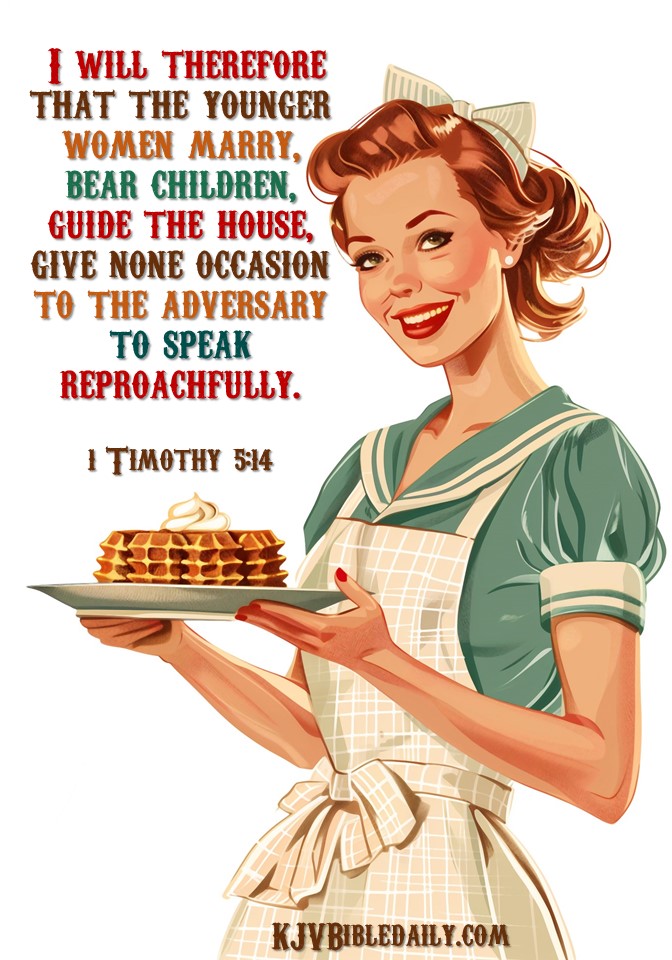 1 Timothy 5:14 KJV Share this:Tweet Click to share on WhatsApp (Opens in new window) WhatsApp Click to print (Opens in new window) Print Click to share on Reddit (Opens in new window) Reddit Click to email a link to a friend (Opens in new window) Email Share on TumblrPocket Click to share on Telegram (Opens in new window) Telegram Like Loading... Related