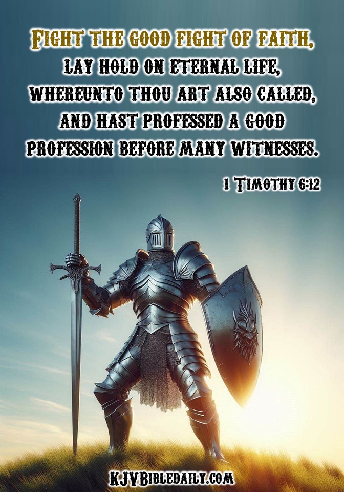 1 Timothy 6:12 KJV Share this:Tweet Click to share on WhatsApp (Opens in new window) WhatsApp Click to print (Opens in new window) Print Click to share on Reddit (Opens in new window) Reddit Click to email a link to a friend (Opens in new window) Email Share on TumblrPocket Click to share on Telegram (Opens in new window) Telegram Like Loading... Related