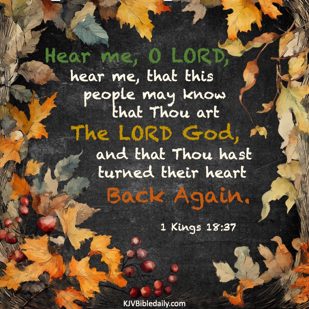 1 Kings 18:37 KJV Share this:Tweet Click to share on WhatsApp (Opens in new window) WhatsApp Click to print (Opens in new window) Print Click to share on Reddit (Opens in new window) Reddit Click to email a link to a friend (Opens in new window) Email Share on TumblrPocket Click to share on Telegram (Opens in new window) Telegram Like Loading... Related