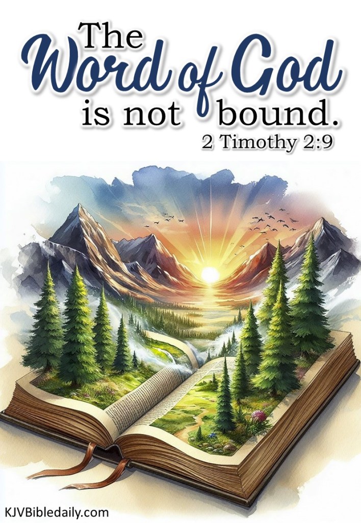 2 Timothy 2:9 KJV Share this:Tweet Click to share on WhatsApp (Opens in new window) WhatsApp Click to print (Opens in new window) Print Click to share on Reddit (Opens in new window) Reddit Click to email a link to a friend (Opens in new window) Email Share on TumblrPocket Click to share on Telegram (Opens in new window) Telegram Like Loading... Related