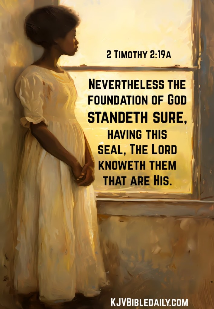 2 Timothy 2:19a KJV Share this:Tweet Click to share on WhatsApp (Opens in new window) WhatsApp Click to print (Opens in new window) Print Click to share on Reddit (Opens in new window) Reddit Click to email a link to a friend (Opens in new window) Email Share on TumblrPocket Click to share on Telegram (Opens in new window) Telegram Like Loading... Related