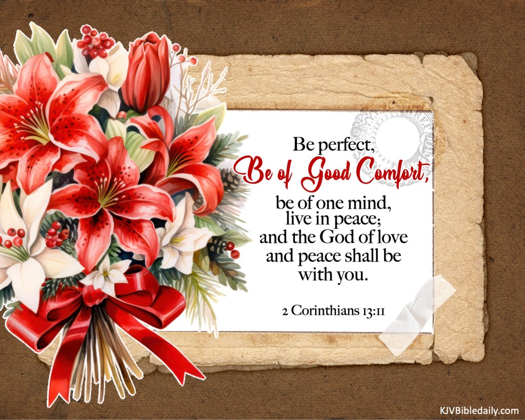 2 Corinthians 13:11 KJV Share this:Tweet Click to share on WhatsApp (Opens in new window) WhatsApp Click to print (Opens in new window) Print Click to share on Reddit (Opens in new window) Reddit Click to email a link to a friend (Opens in new window) Email Share on TumblrPocket Click to share on Telegram (Opens in new window) Telegram Like Loading... Related