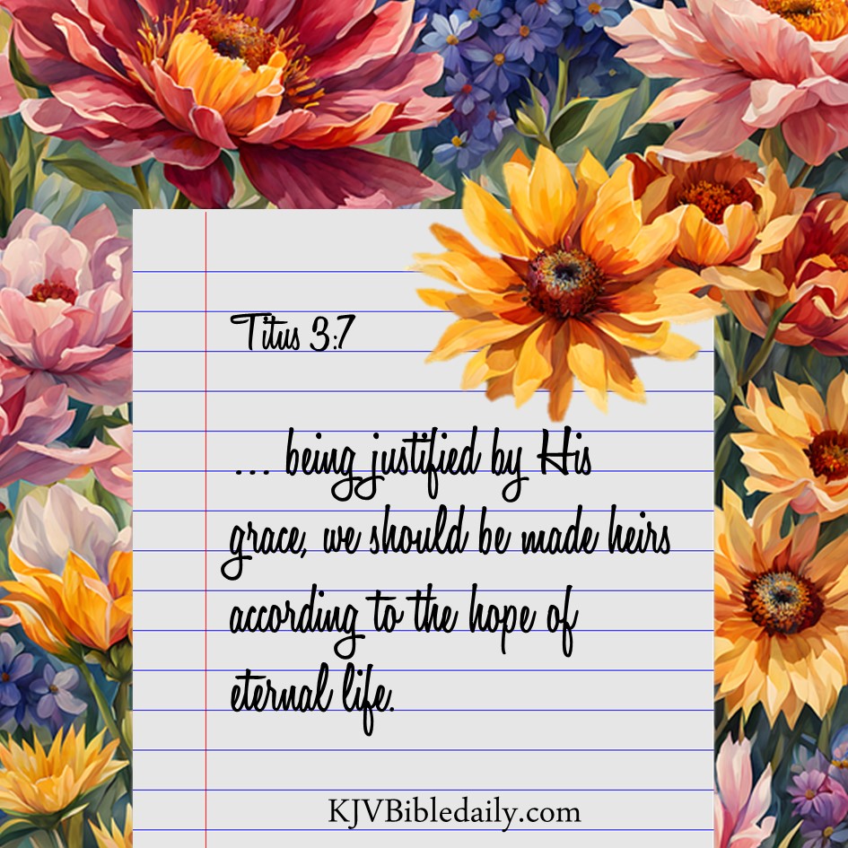 Titus 3:7 KJV Share this:Tweet Click to share on WhatsApp (Opens in new window) WhatsApp Click to print (Opens in new window) Print Click to share on Reddit (Opens in new window) Reddit Click to email a link to a friend (Opens in new window) Email Share on TumblrPocket Click to share on Telegram (Opens in new window) Telegram Like Loading... Related