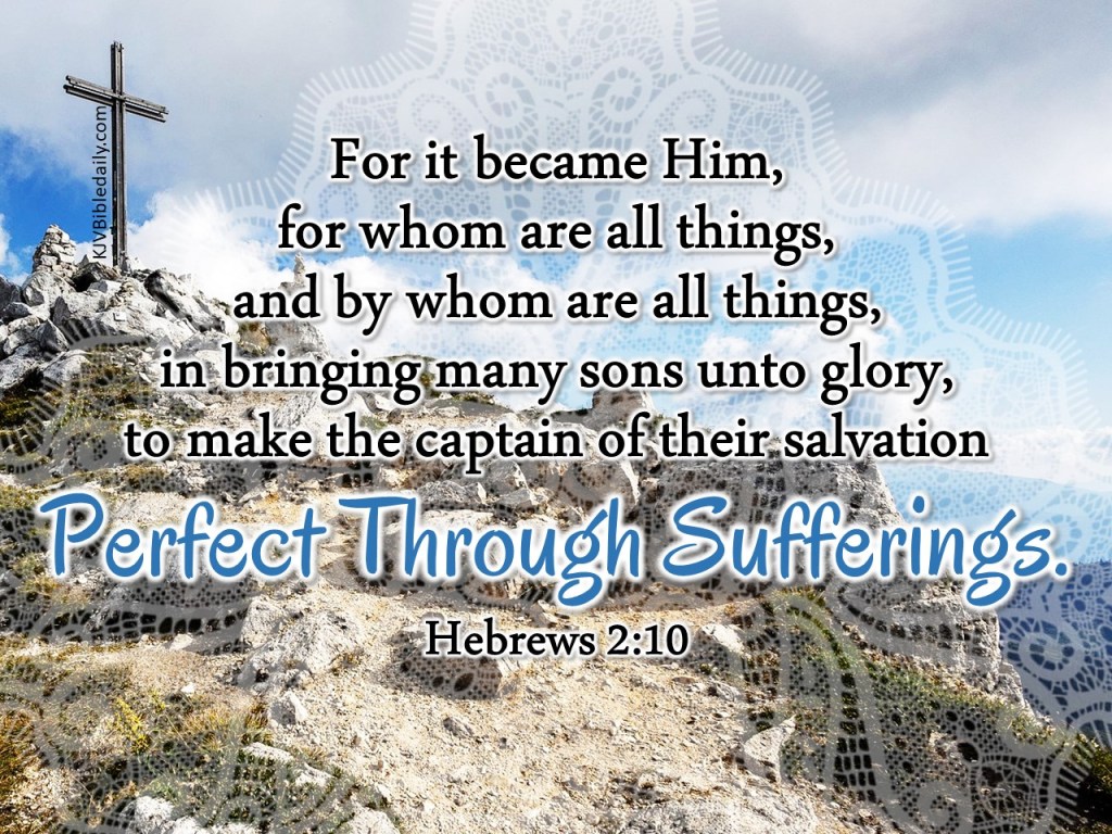Hebrews 2:10 KJV Share this:Tweet Click to share on WhatsApp (Opens in new window) WhatsApp Click to print (Opens in new window) Print Click to share on Reddit (Opens in new window) Reddit Click to email a link to a friend (Opens in new window) Email Share on TumblrPocket Click to share on Telegram (Opens in new window) Telegram Like Loading... Related