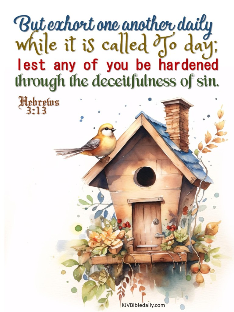 Hebrews 3:13 KJV Share this:Tweet Click to share on WhatsApp (Opens in new window) WhatsApp Click to print (Opens in new window) Print Click to share on Reddit (Opens in new window) Reddit Click to email a link to a friend (Opens in new window) Email Share on TumblrPocket Click to share on Telegram (Opens in new window) Telegram Like Loading... Related