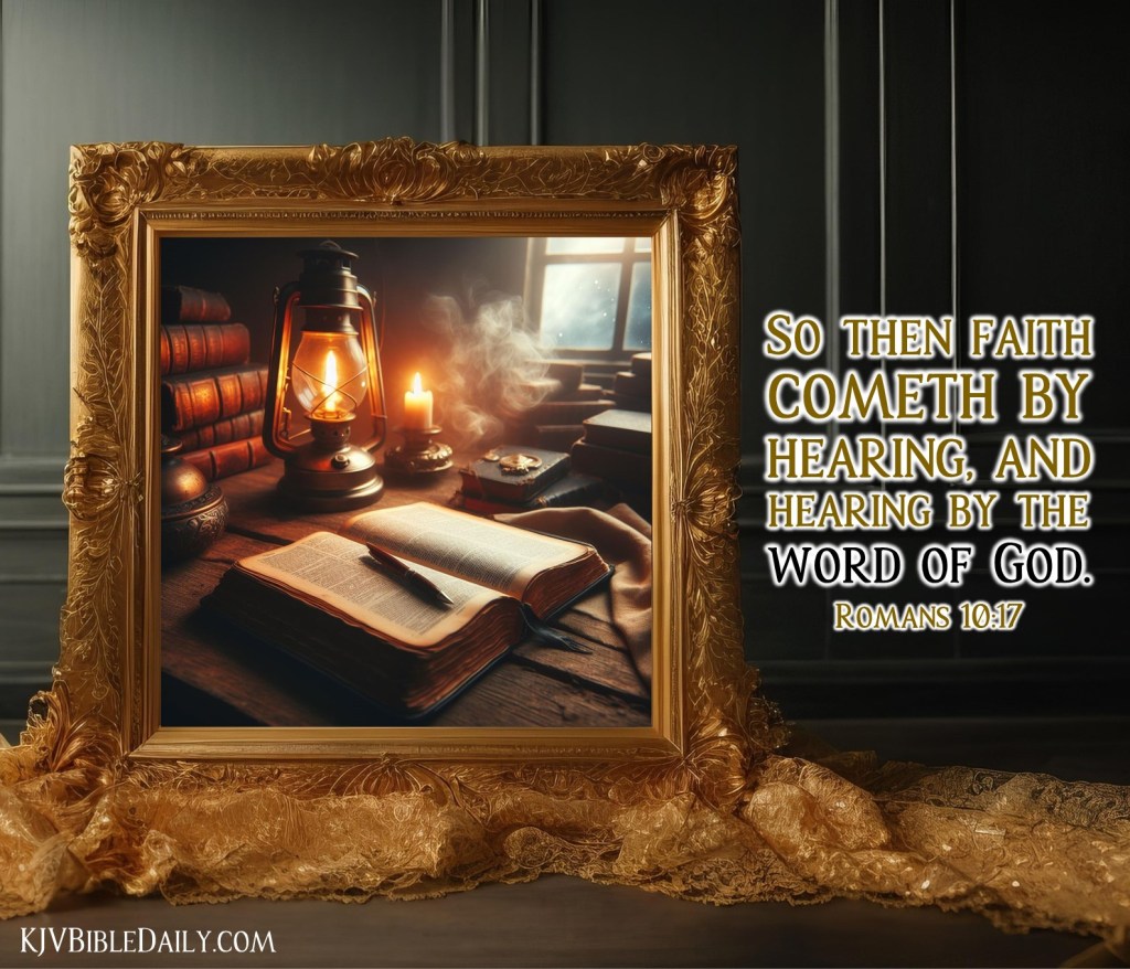 Romans 10:17 KJV Share this:Tweet Click to share on WhatsApp (Opens in new window) WhatsApp Click to print (Opens in new window) Print Click to share on Reddit (Opens in new window) Reddit Click to email a link to a friend (Opens in new window) Email Share on TumblrPocket Click to share on Telegram (Opens in new window) Telegram Like Loading... Related