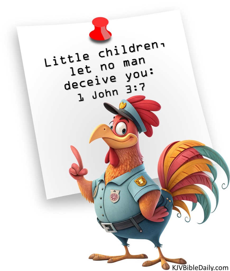 1 John 3:7 KJV Share this:Tweet Click to share on WhatsApp (Opens in new window) WhatsApp Click to print (Opens in new window) Print Click to share on Reddit (Opens in new window) Reddit Click to email a link to a friend (Opens in new window) Email Share on TumblrPocket Click to share on Telegram (Opens in new window) Telegram Like Loading... Related