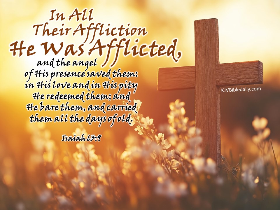 Isaiah 63:9 KJV Share this:Tweet Click to share on WhatsApp (Opens in new window) WhatsApp Click to print (Opens in new window) Print Click to share on Reddit (Opens in new window) Reddit Click to email a link to a friend (Opens in new window) Email Share on TumblrPocket Click to share on Telegram (Opens in new window) Telegram Like Loading... Related