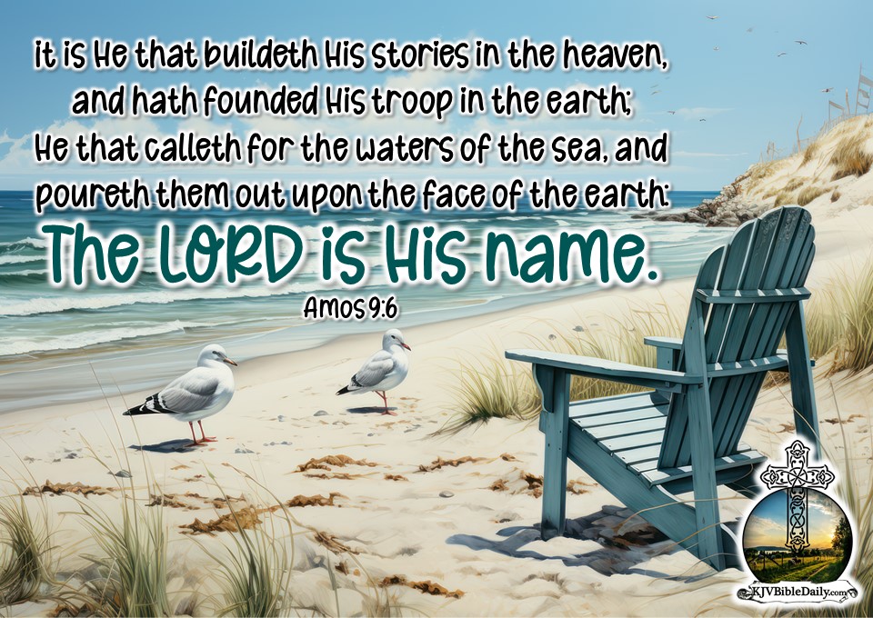 Amos 9:6 KJV Share this:Tweet Click to share on WhatsApp (Opens in new window) WhatsApp Click to print (Opens in new window) Print Click to share on Reddit (Opens in new window) Reddit Click to email a link to a friend (Opens in new window) Email Share on TumblrPocket Click to share on Telegram (Opens in new window) Telegram Like Loading... Related