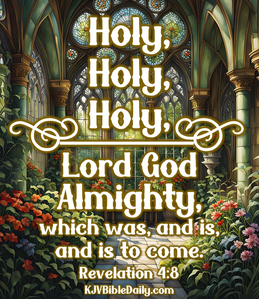 Revelation 4:8 KJV Share this:Tweet Click to share on WhatsApp (Opens in new window) WhatsApp Click to print (Opens in new window) Print Click to share on Reddit (Opens in new window) Reddit Click to email a link to a friend (Opens in new window) Email Share on TumblrPocket Click to share on Telegram (Opens in new window) Telegram Like Loading... Related