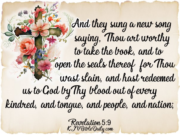 Revelation 5:9 KJV Share this:Tweet Click to share on WhatsApp (Opens in new window) WhatsApp Click to print (Opens in new window) Print Click to share on Reddit (Opens in new window) Reddit Click to email a link to a friend (Opens in new window) Email Share on TumblrPocket Click to share on Telegram (Opens in new window) Telegram Like Loading... Related