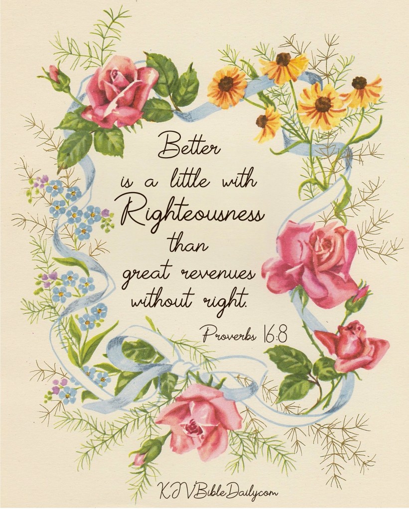 Proverbs 16:8 KJV Share this:Tweet Click to share on WhatsApp (Opens in new window) WhatsApp Click to print (Opens in new window) Print Click to share on Reddit (Opens in new window) Reddit Click to email a link to a friend (Opens in new window) Email Share on TumblrPocket Click to share on Telegram (Opens in new window) Telegram Like Loading... Related