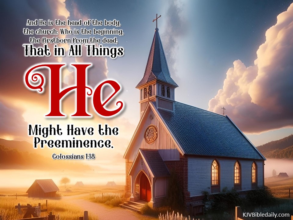 Colossians 1:18 KJV Share this:Tweet Click to share on WhatsApp (Opens in new window) WhatsApp Click to print (Opens in new window) Print Click to share on Reddit (Opens in new window) Reddit Click to email a link to a friend (Opens in new window) Email Share on TumblrPocket Click to share on Telegram (Opens in new window) Telegram Like Loading... Related