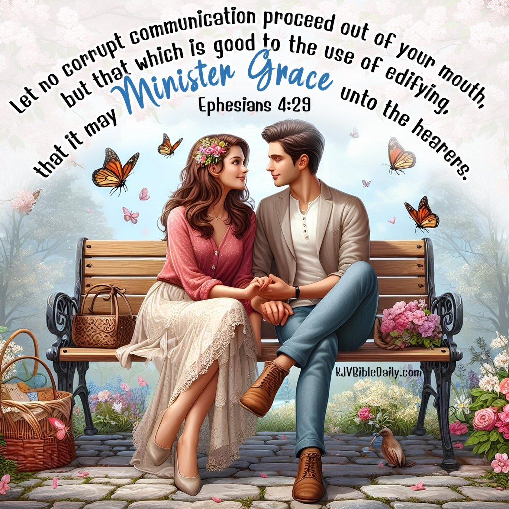 Ephesians 4:29 KJV Share this:Tweet Click to share on WhatsApp (Opens in new window) WhatsApp Click to print (Opens in new window) Print Click to share on Reddit (Opens in new window) Reddit Click to email a link to a friend (Opens in new window) Email Share on TumblrPocket Click to share on Telegram (Opens in new window) Telegram Like Loading... Related