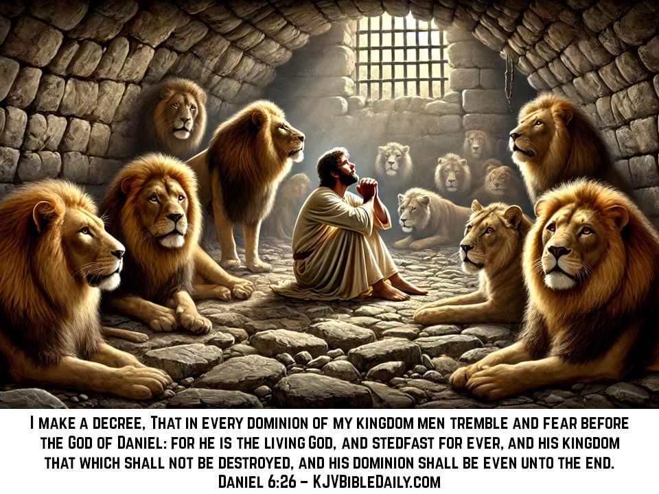 Daniel 6:26 KJV Share this:Tweet Click to share on WhatsApp (Opens in new window) WhatsApp Click to print (Opens in new window) Print Click to share on Reddit (Opens in new window) Reddit Click to email a link to a friend (Opens in new window) Email Share on TumblrPocket Click to share on Telegram (Opens in new window) Telegram Like Loading... Related