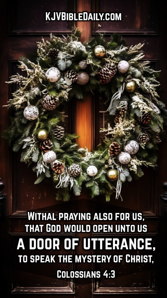 Colossians 4:3 KJV Share this:Tweet Click to share on WhatsApp (Opens in new window) WhatsApp Click to print (Opens in new window) Print Click to share on Reddit (Opens in new window) Reddit Click to email a link to a friend (Opens in new window) Email Share on TumblrPocket Click to share on Telegram (Opens in new window) Telegram Like Loading... Related