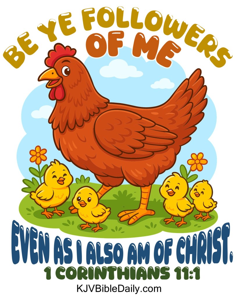 1 Corinthians 11:1 KJV Share this:Tweet Click to share on WhatsApp (Opens in new window) WhatsApp Click to print (Opens in new window) Print Click to share on Reddit (Opens in new window) Reddit Click to email a link to a friend (Opens in new window) Email Share on TumblrPocket Click to share on Telegram (Opens in new window) Telegram Like Loading... Related