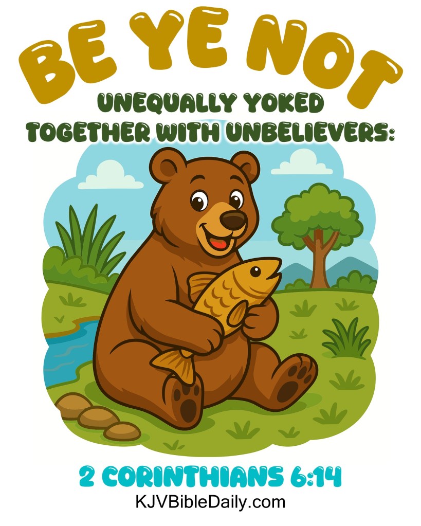 2 Corinthians 6:14 KJV Share this:Tweet Share on WhatsApp (Opens in new window) WhatsApp Print (Opens in new window) Print Share on Reddit (Opens in new window) Reddit Email a link to a friend (Opens in new window) Email Share on TumblrPocket Share on Telegram (Opens in new window) Telegram Like Loading... Related