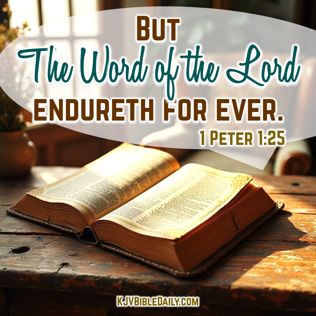 1 Peter 1:25 KJV Share this:Tweet Share on WhatsApp (Opens in new window) WhatsApp Print (Opens in new window) Print Share on Reddit (Opens in new window) Reddit Email a link to a friend (Opens in new window) Email Share on TumblrPocket Share on Telegram (Opens in new window) Telegram Like Loading... Related