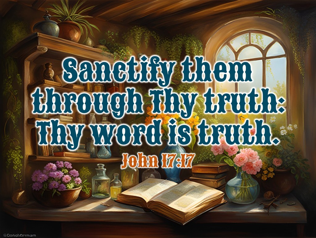 John 17:17 KJV Share this:Tweet Share on WhatsApp (Opens in new window) WhatsApp Print (Opens in new window) Print Share on Reddit (Opens in new window) Reddit Email a link to a friend (Opens in new window) Email Share on TumblrPocket Share on Telegram (Opens in new window) Telegram Like Loading... Related