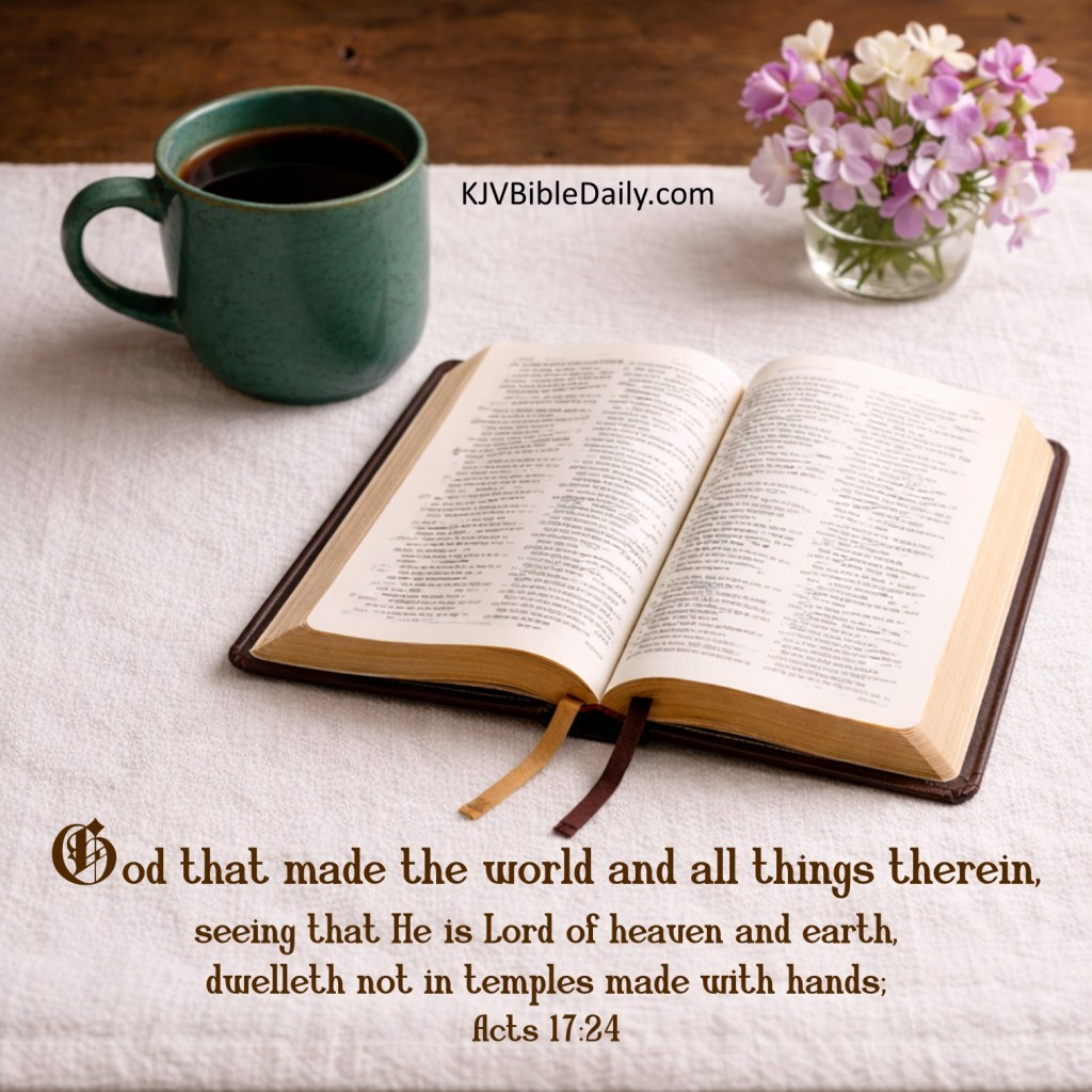 Acts 17:24 KJV Share this:Tweet Share on WhatsApp (Opens in new window) WhatsApp Print (Opens in new window) Print Share on Reddit (Opens in new window) Reddit Email a link to a friend (Opens in new window) Email Share on Tumblr Share on Telegram (Opens in new window) Telegram Like Loading... Related