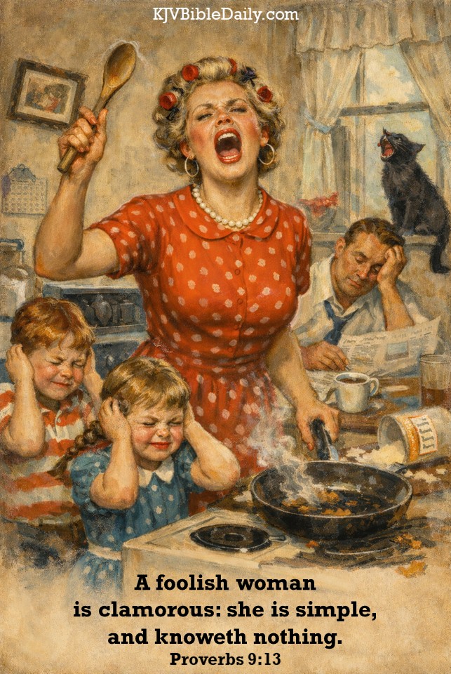 Proverbs 9:13 KJV Share this:Tweet Share on WhatsApp (Opens in new window) WhatsApp Print (Opens in new window) Print Share on Reddit (Opens in new window) Reddit Email a link to a friend (Opens in new window) Email Share on Tumblr Share on Telegram (Opens in new window) Telegram Like Loading... Related