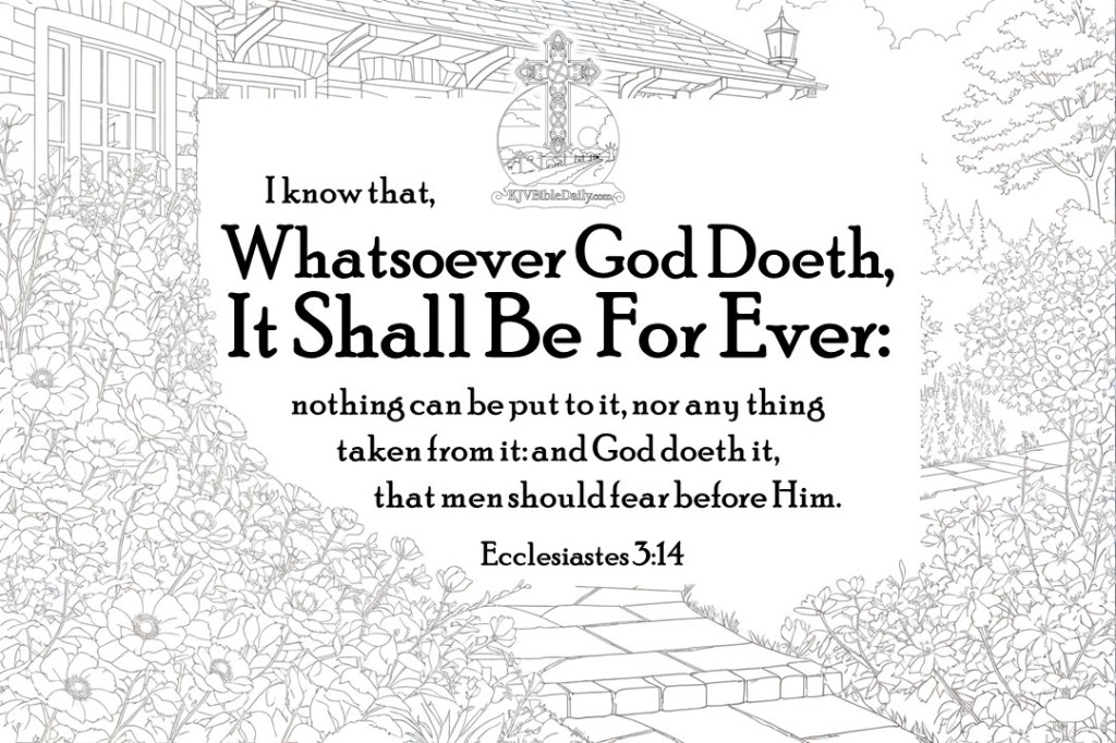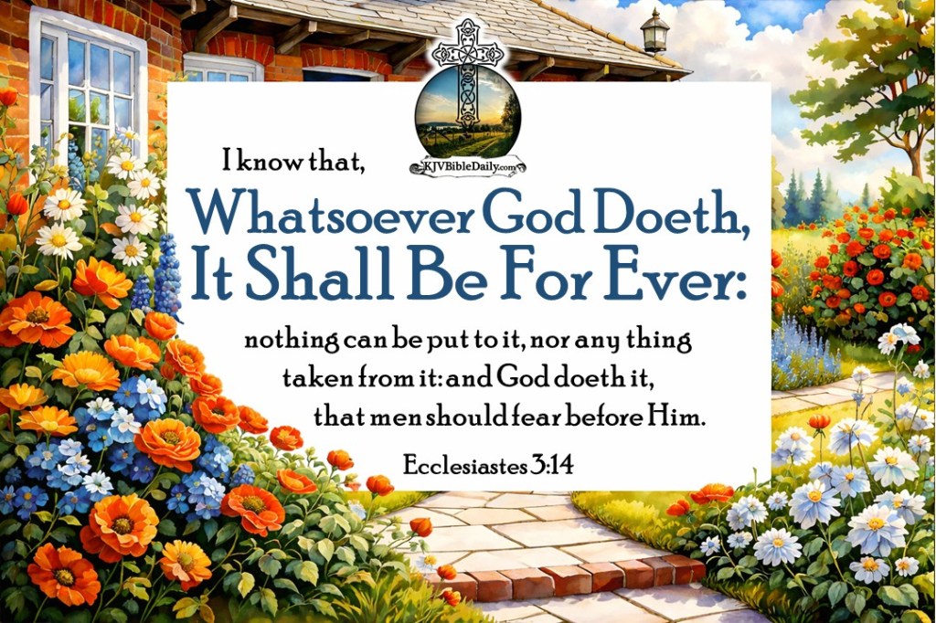 Ecclesiastes 3:14 KJV Share this:Tweet Share on WhatsApp (Opens in new window) WhatsApp Print (Opens in new window) Print Share on Reddit (Opens in new window) Reddit Email a link to a friend (Opens in new window) Email Share on Tumblr Share on Telegram (Opens in new window) Telegram Like Loading... Related