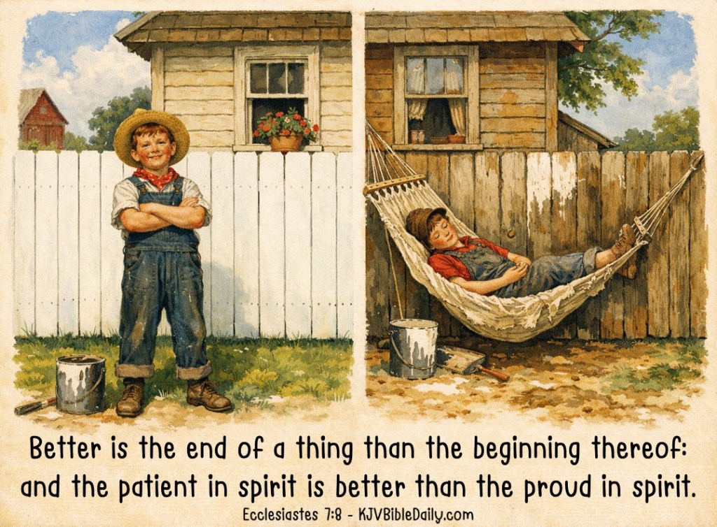 Ecclesiastes 7:8 KJV Share this:Tweet Share on WhatsApp (Opens in new window) WhatsApp Print (Opens in new window) Print Share on Reddit (Opens in new window) Reddit Email a link to a friend (Opens in new window) Email Share on Tumblr Share on Telegram (Opens in new window) Telegram Like Loading... Related