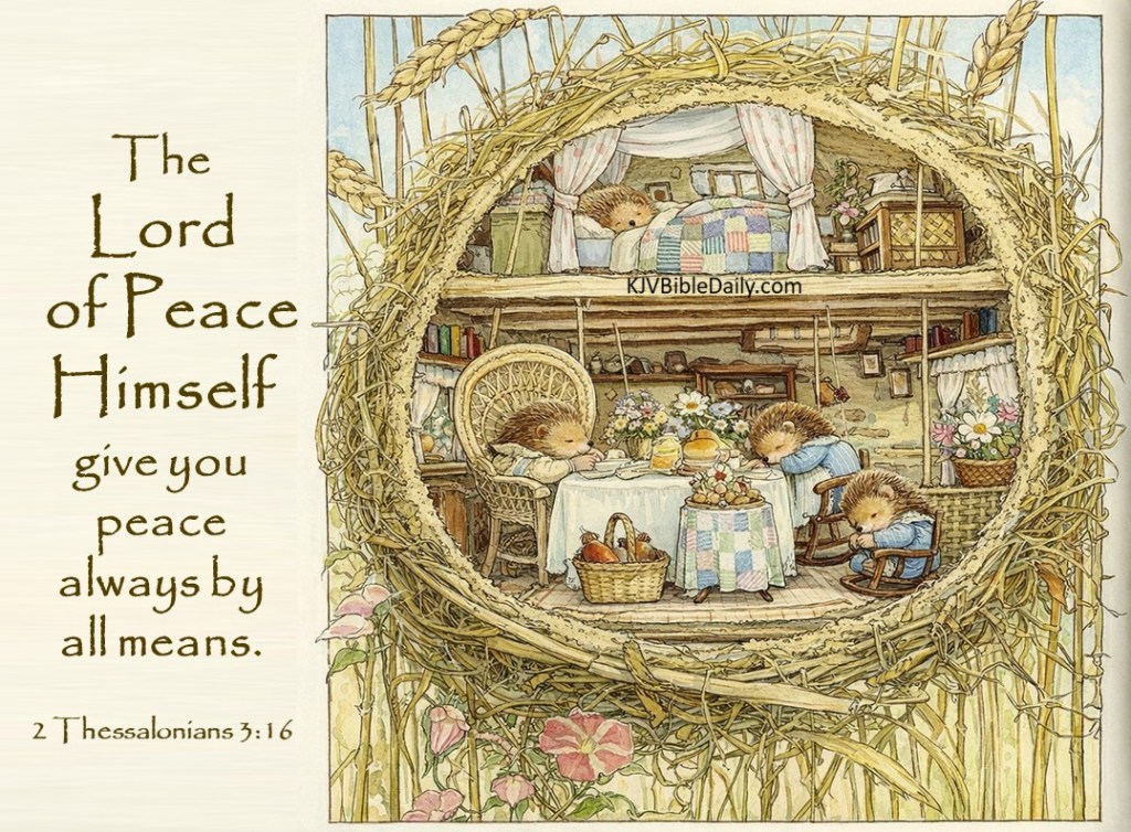 2 Thessalonians 3:16 KJV Share this:Tweet Share on WhatsApp (Opens in new window) WhatsApp Print (Opens in new window) Print Share on Reddit (Opens in new window) Reddit Email a link to a friend (Opens in new window) Email Share on Tumblr Share on Telegram (Opens in new window) Telegram Like Loading... Related