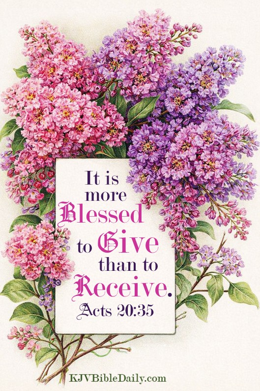 Acts 20:35 KJV Share this:Tweet Share on WhatsApp (Opens in new window) WhatsApp Print (Opens in new window) Print Share on Reddit (Opens in new window) Reddit Email a link to a friend (Opens in new window) Email Share on Tumblr Share on Telegram (Opens in new window) Telegram Like Loading... Related
