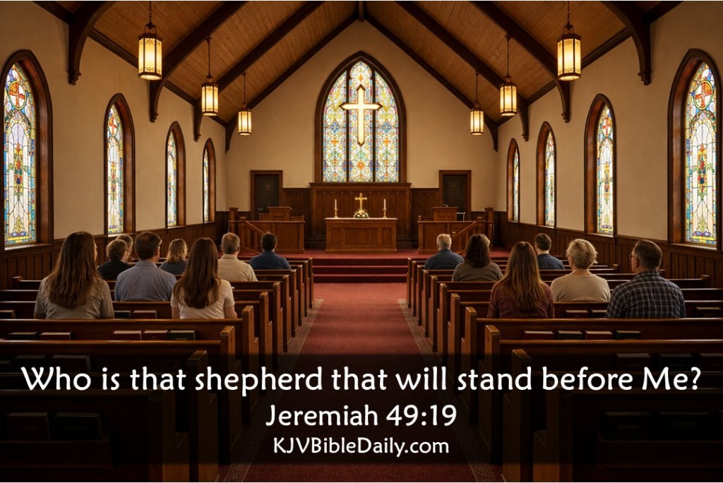 Jeremiah 49:19 KJV Share this:Tweet Share on WhatsApp (Opens in new window) WhatsApp Print (Opens in new window) Print Share on Reddit (Opens in new window) Reddit Email a link to a friend (Opens in new window) Email Share on Tumblr Share on Telegram (Opens in new window) Telegram Like Loading... Related