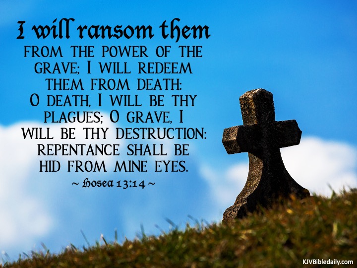 Hosea 13:14 KJV Share this:Tweet Share on WhatsApp (Opens in new window) WhatsApp Print (Opens in new window) Print Share on Reddit (Opens in new window) Reddit Email a link to a friend (Opens in new window) Email Share on Tumblr Share on Telegram (Opens in new window) Telegram Like Loading...