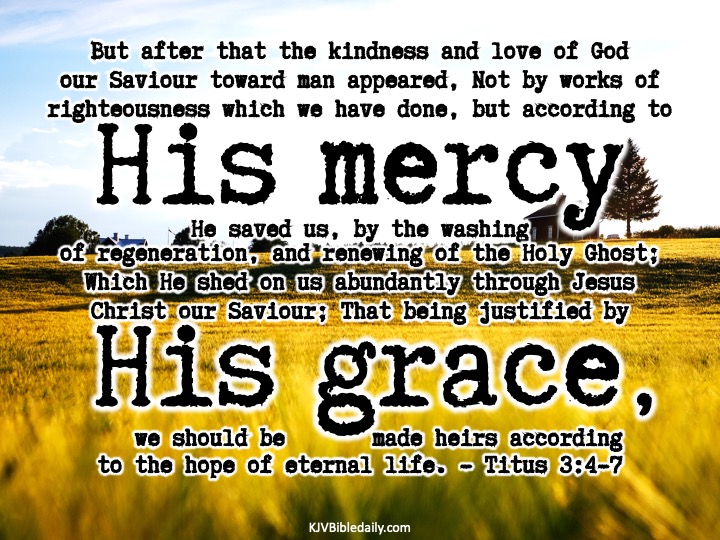 Titus 3:4-7 KJV Share this:Tweet Share on WhatsApp (Opens in new window) WhatsApp Print (Opens in new window) Print Share on Reddit (Opens in new window) Reddit Email a link to a friend (Opens in new window) Email Share on Tumblr Share on Telegram (Opens in new window) Telegram Like Loading...