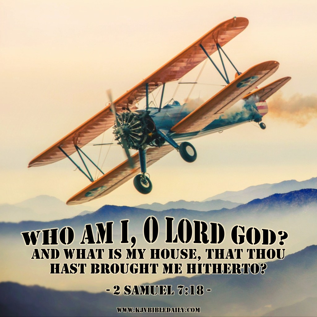 2 Samuel 7:18 KJV Share this:Tweet Share on WhatsApp (Opens in new window) WhatsApp Print (Opens in new window) Print Share on Reddit (Opens in new window) Reddit Email a link to a friend (Opens in new window) Email Share on Tumblr Share on Telegram (Opens in new window) Telegram Like Loading...