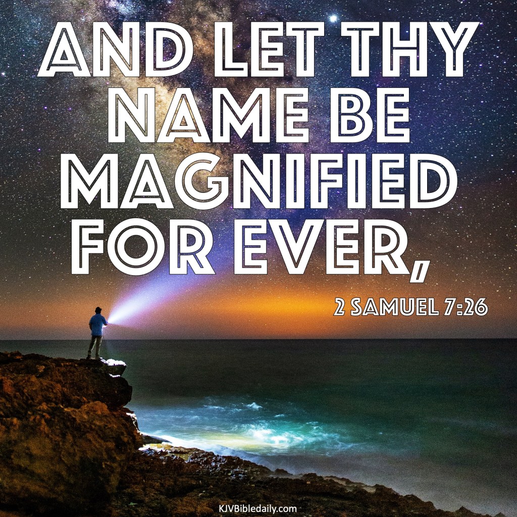 2 Samuel 7:26 KJV Share this:Tweet Share on WhatsApp (Opens in new window) WhatsApp Print (Opens in new window) Print Share on Reddit (Opens in new window) Reddit Email a link to a friend (Opens in new window) Email Share on Tumblr Share on Telegram (Opens in new window) Telegram Like Loading...