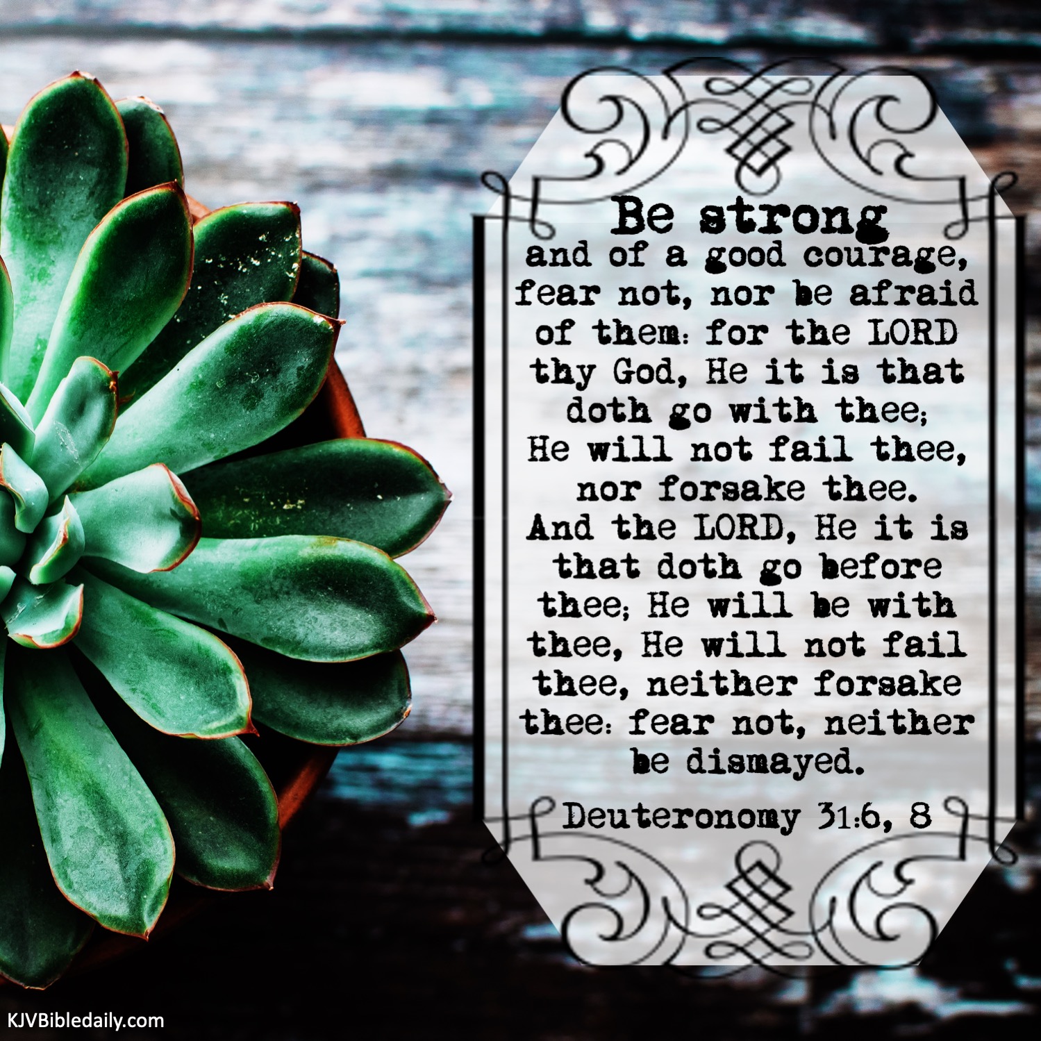 Previous Image Next Image Deuteronomy 31-6-8, KJV Share this:Tweet Share on WhatsApp (Opens in new window) WhatsApp Print (Opens in new window) Print Share on Reddit (Opens in new window) Reddit Email a link to a friend (Opens in new window) Email Share on Tumblr Share on Telegram (Opens in new window) Telegram Like Loading...