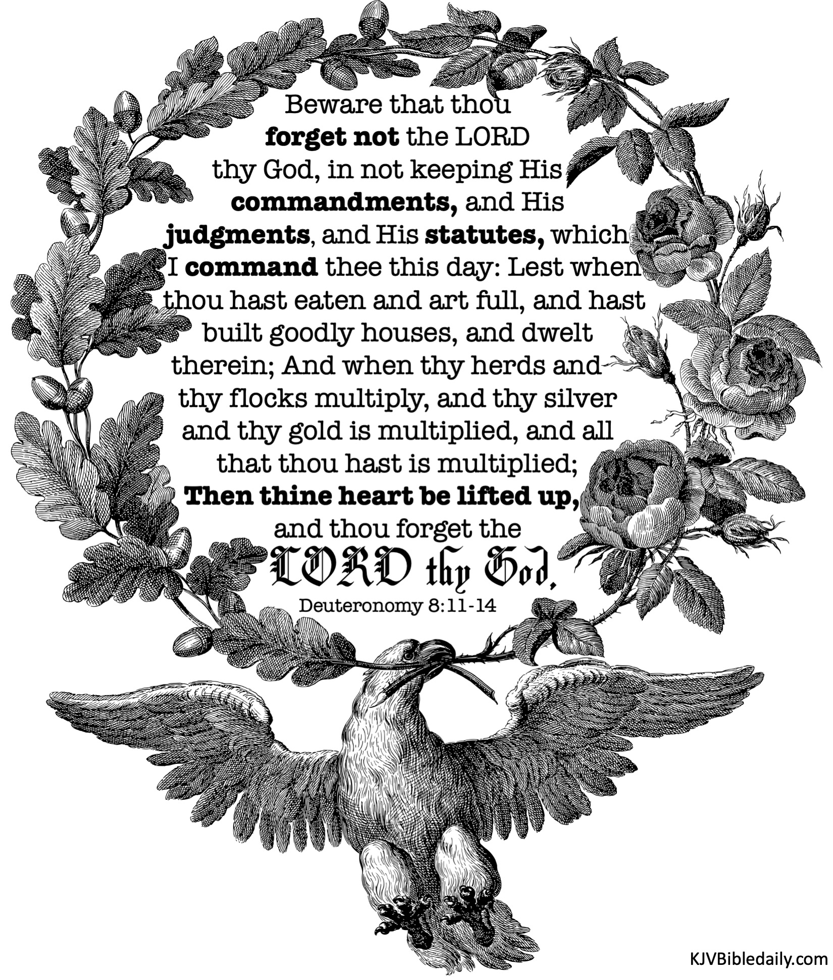 Previous Image Next Image Deuteronomy 8-11-14 KJV Share this:Tweet Share on WhatsApp (Opens in new window) WhatsApp Print (Opens in new window) Print Share on Reddit (Opens in new window) Reddit Email a link to a friend (Opens in new window) Email Share on Tumblr Share on Telegram (Opens in new window) Telegram Like Loading...