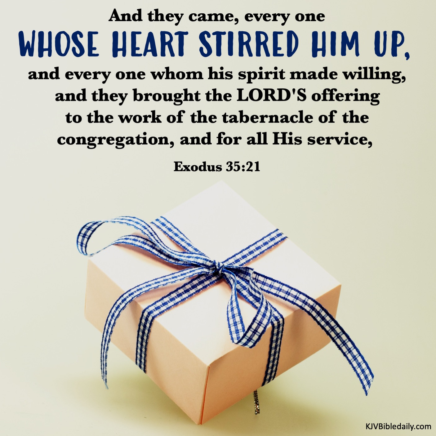 Previous Image Next Image Exodus 35-21 KJV Share this:Tweet Share on WhatsApp (Opens in new window) WhatsApp Print (Opens in new window) Print Share on Reddit (Opens in new window) Reddit Email a link to a friend (Opens in new window) Email Share on Tumblr Share on Telegram (Opens in new window) Telegram Like Loading...