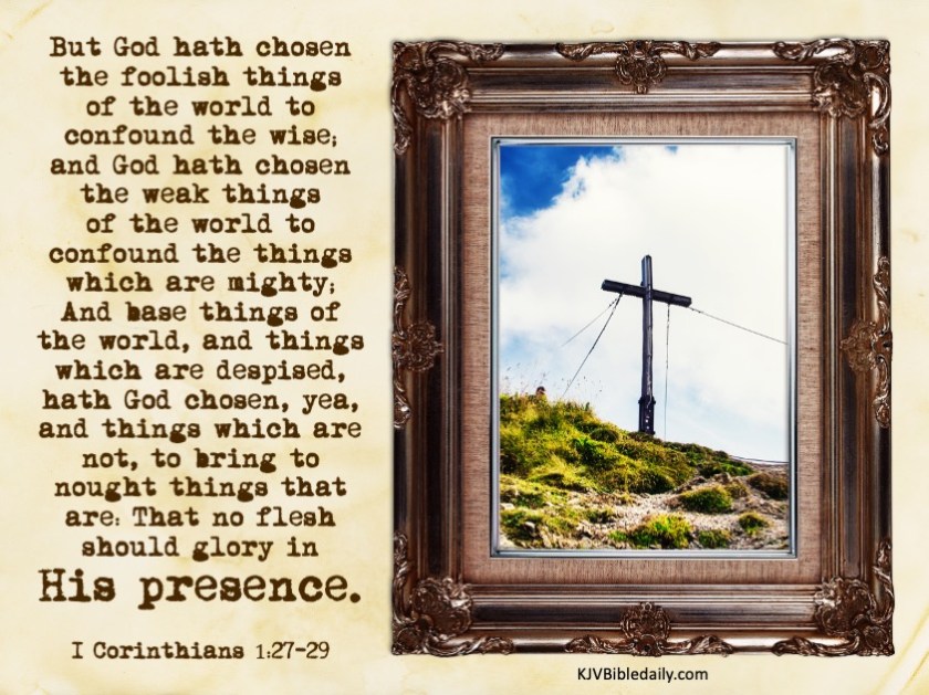 Previous Image Next Image i-corinthians-1-27-29-kjv Share this:Tweet Share on WhatsApp (Opens in new window) WhatsApp Print (Opens in new window) Print Share on Reddit (Opens in new window) Reddit Email a link to a friend (Opens in new window) Email Share on TumblrPocket Share on Telegram (Opens in new window) Telegram Like Loading...