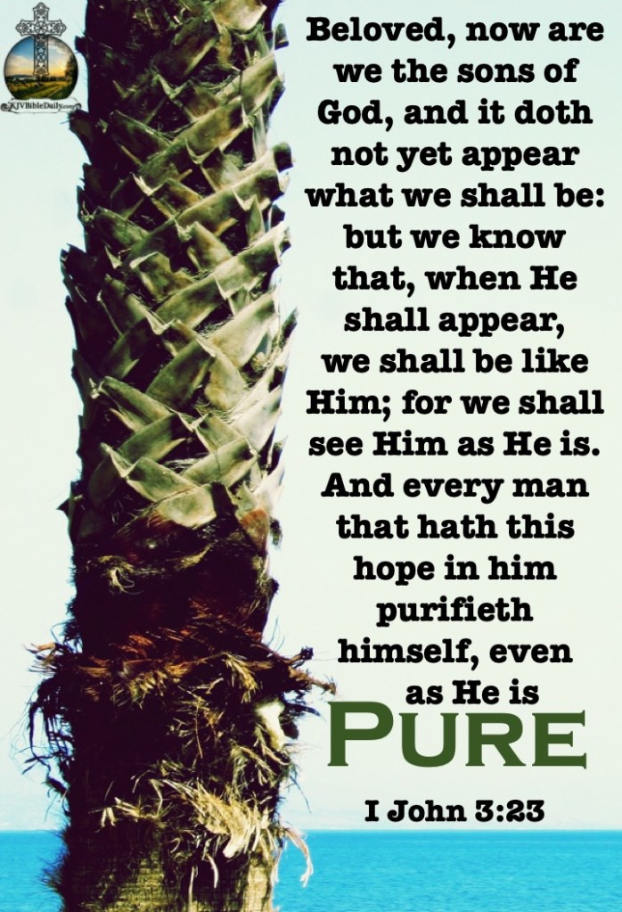 Previous Image Next Image I John 3-2,3 KJV Share this:Tweet Share on WhatsApp (Opens in new window) WhatsApp Print (Opens in new window) Print Share on Reddit (Opens in new window) Reddit Email a link to a friend (Opens in new window) Email Share on Tumblr Share on Telegram (Opens in new window) Telegram Like Loading...