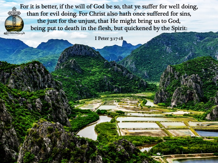 Previous Image Next Image I Peter 3 17, 18 KJV Share this:Tweet Share on WhatsApp (Opens in new window) WhatsApp Print (Opens in new window) Print Share on Reddit (Opens in new window) Reddit Email a link to a friend (Opens in new window) Email Share on Tumblr Share on Telegram (Opens in new window) Telegram Like Loading...