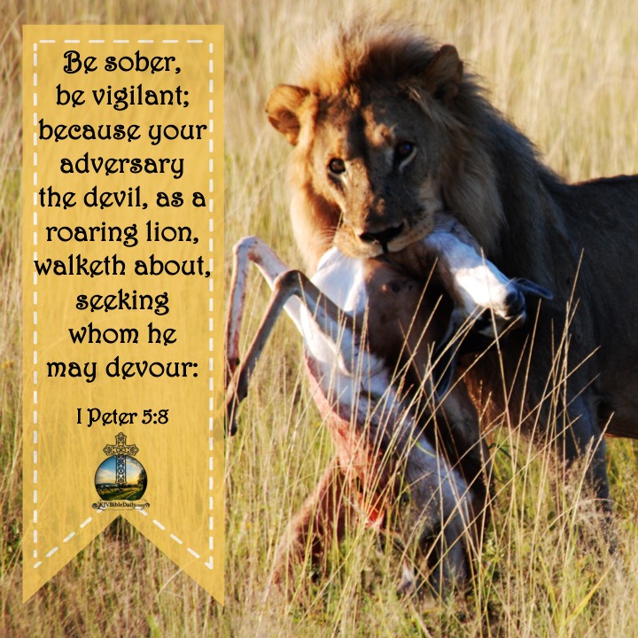 Previous Image Next Image I Peter 5 8 KJV Share this:Tweet Share on WhatsApp (Opens in new window) WhatsApp Print (Opens in new window) Print Share on Reddit (Opens in new window) Reddit Email a link to a friend (Opens in new window) Email Share on Tumblr Share on Telegram (Opens in new window) Telegram Like Loading...