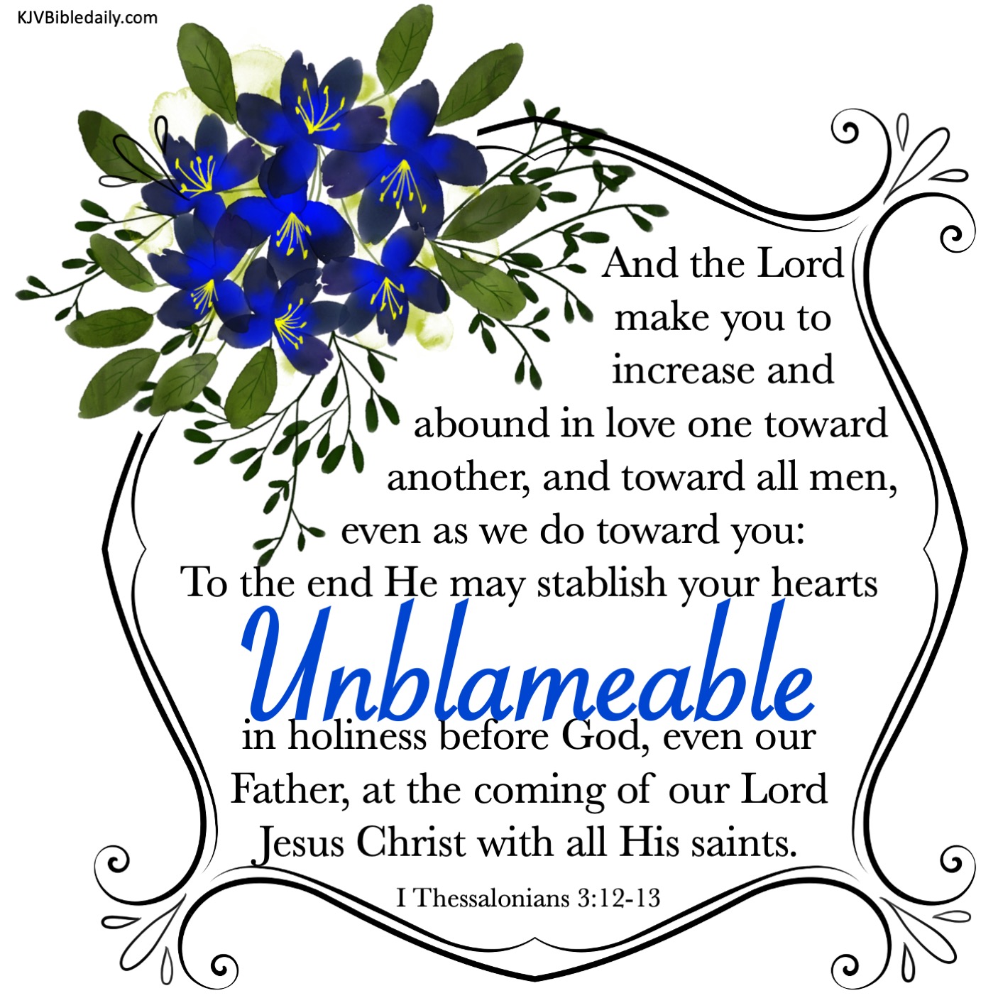 Previous Image Next Image I Thessalonians 3-12-13 KJV Share this:Tweet Share on WhatsApp (Opens in new window) WhatsApp Print (Opens in new window) Print Share on Reddit (Opens in new window) Reddit Email a link to a friend (Opens in new window) Email Share on Tumblr Share on Telegram (Opens in new window) Telegram Like Loading...