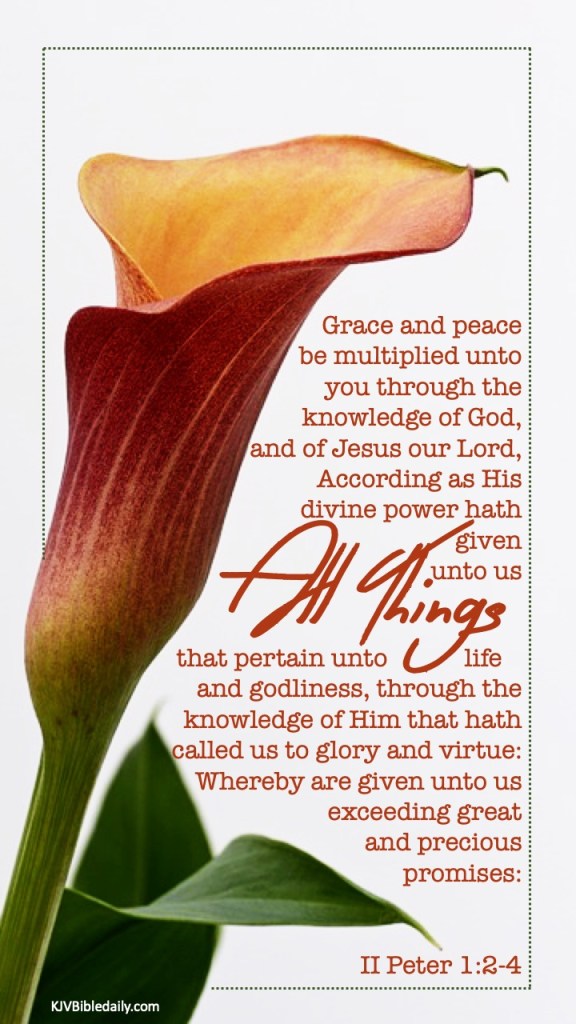 Previous Image Next Image II Peter 1 2-4 KJV Share this:Tweet Share on WhatsApp (Opens in new window) WhatsApp Print (Opens in new window) Print Share on Reddit (Opens in new window) Reddit Email a link to a friend (Opens in new window) Email Share on Tumblr Share on Telegram (Opens in new window) Telegram Like Loading...